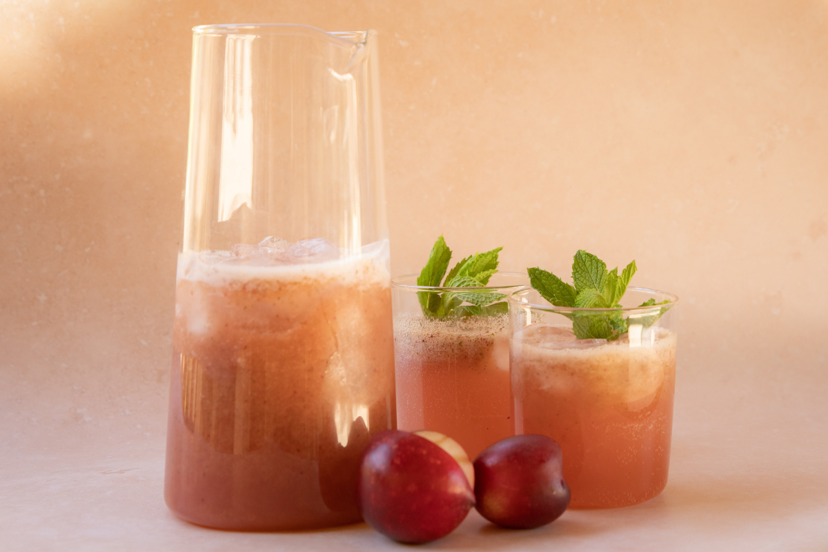 Arctic Star nectarines are known for their sweet and juicy white flesh. They ripen early in the summer season and are delicious eaten out of hand, dried, or used for baking. Here, we’ve blended them into a light and refreshing mocktail that’s also flavored with lemon, mint, and honey. We love to use creamy wildflower honey because it has a perfumey aroma that pairs so nicely with the nectarines, but feel free to substitute with what you have available. Likewise, if you can’t find Arctic Star nectarines, other varieties will stand in nicely.