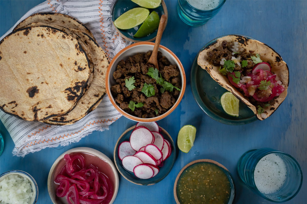 - Serve the lamb family style, with the warm tortillas, limes wedges, sliced radish, minced onion, and chopped cilantro alongside.