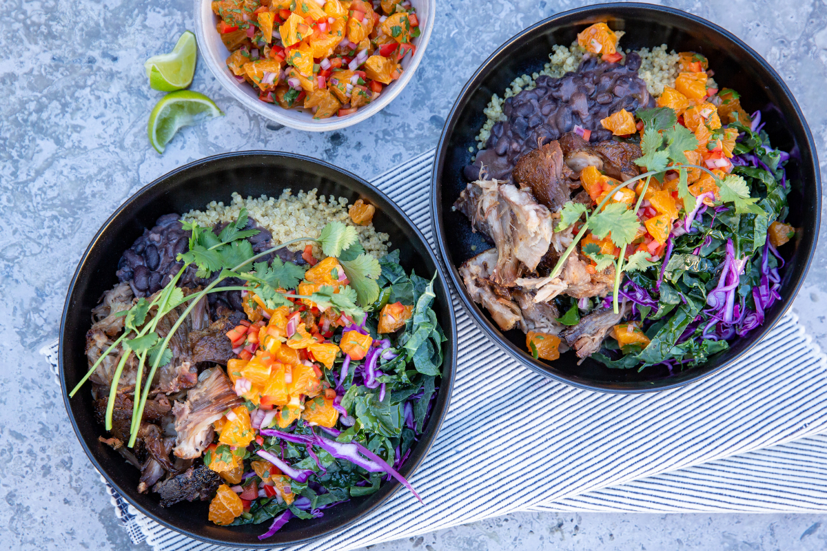 A classic Cuban dish, Mojo Pork uses sour orange, oregano, and garlic in a marinade that results in flavorful, juicy meat. It’s a great dish for the wintertime, when we can take advantage of the abundance of citrus fruit from our orchards. In our version, we like to use a mixture of Paige mandarins and Bearss lime, which nicely nods to the flavors of sour orange. It’s not quite the same, but it’s delicious in its own right. Serve the pork in bowls with steamed quinoa, seasoned black beans, raw or cooked greens, a dollop of sour cream, and plenty of the sweet mandarin salsa.