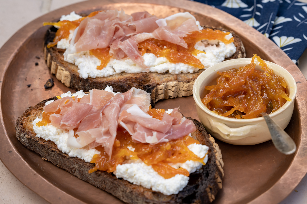 Prosciutto and Ricotta Tartine with Mandarin-Honey Marmalade